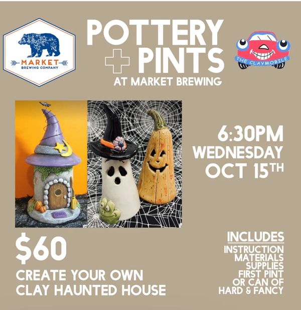 If you are a Halloween lover, this is right up your alley. Come out to Market Brewing Co. 17775 Leslie Street, Newmarket for a nice cold brew and create your very own, unique Clay Haunted House. You will be able to customize to your liking as well as adding some nice spooky colours.